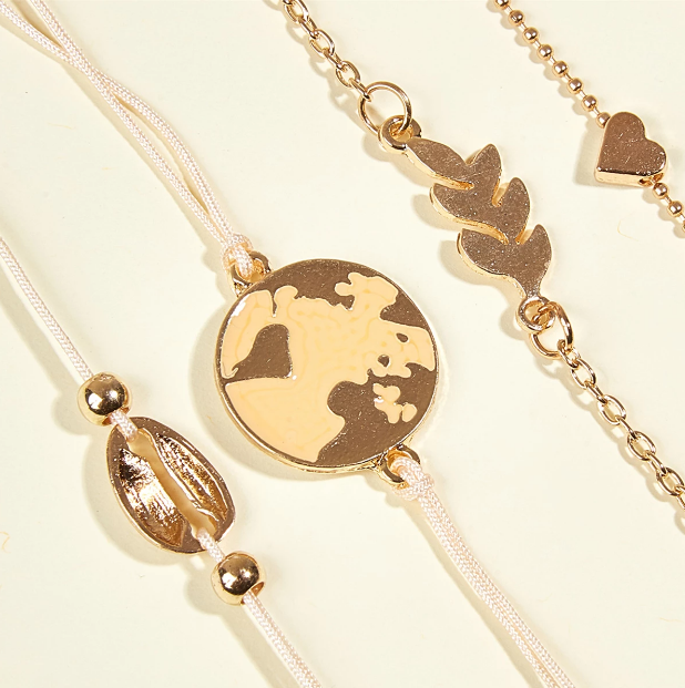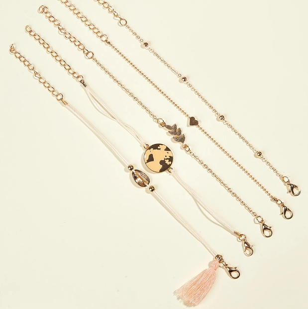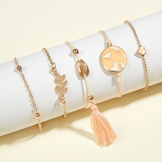 Conjunto de pulsera con borla dorada